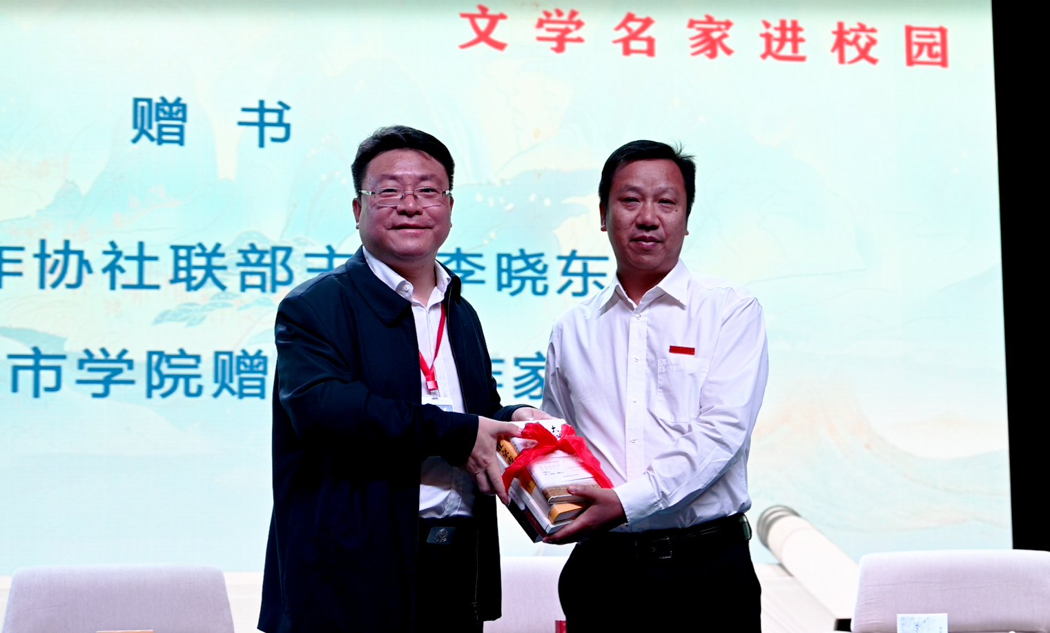 接下来,举行了受邀作家向大发官方版网站登录入口赠书仪式,学校图书馆馆长莫连光代表学校接受了赠书。