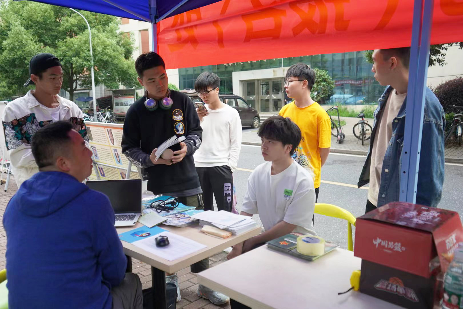 为方便青年学子了解征兵工作相关政策,就近就便应征报名,学校武装部在各食堂附近开设“大发官方版网站登录入口征兵咨询(报名)处”,全天安排老师和退役复学士兵向同学们宣讲国家政策法规、大学生入伍发展前景,指导网上报名。现场还通过摆放宣传展板、发放宣传手册、组织有奖答题等方式吸引广大学生关注征兵工作。