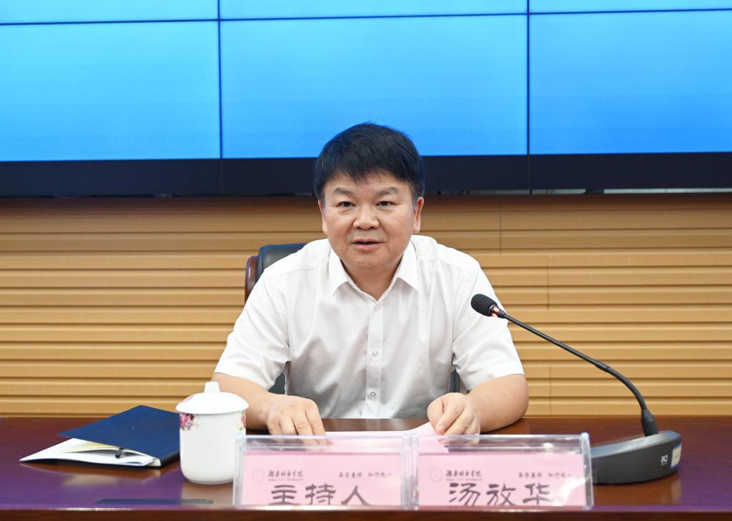 本网讯(记者 文彦波)8月31日,我校2023年秋季学期开学工作会议在图书馆报告厅召开。校党委书记汤放华主持会议并讲话,校长何振总结暑期工作并就新学期开学工作作了布置。全体校领导及副处级以上干部参加会议。