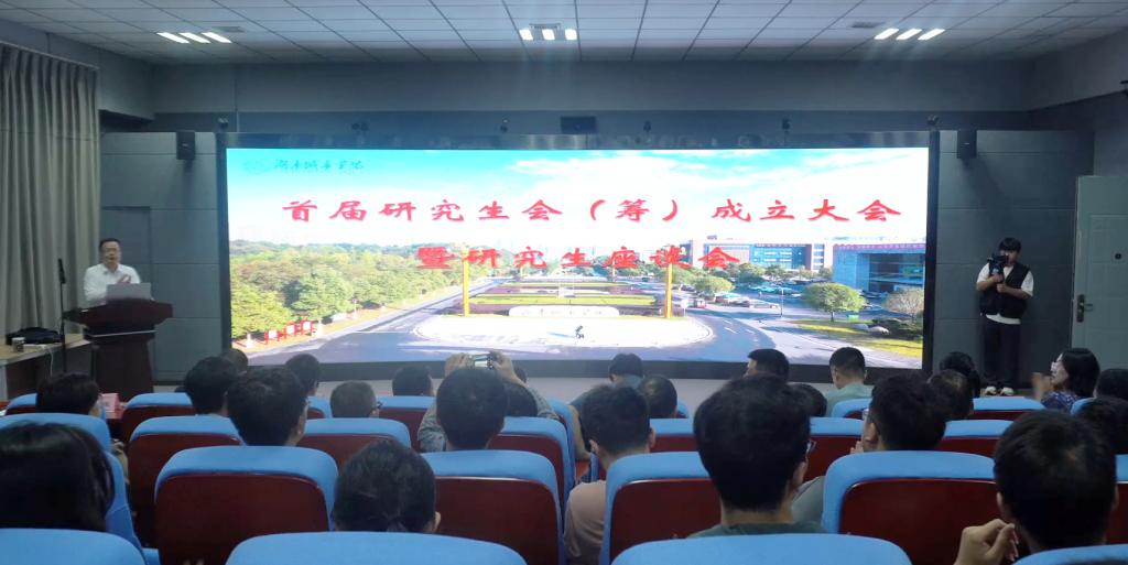 本网讯(通讯员 周建存)10月17日晚,我校在建规楼432室举行首届研究生会(筹)成立大会,校党委书记汤放华出席大会并表示祝贺。副校长袁志成主持会议。相关职能处室负责人、研究生导师、全体2023级研究生参加会议。