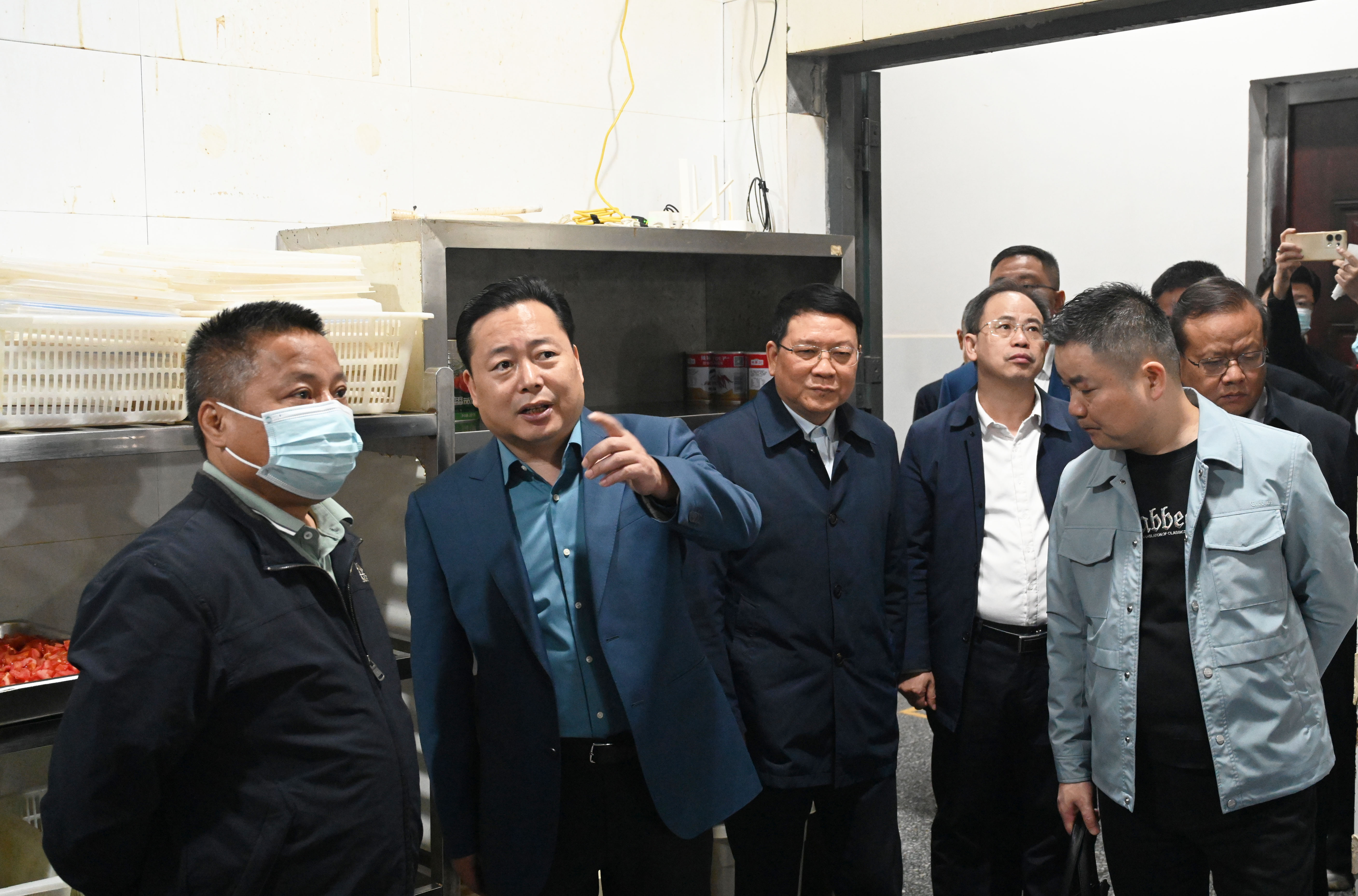 熊炜一行深入学校堂食门店、食堂仓库、食品加工间、消洗间等场所,逐一检查原辅材料采购、食品加工、餐具消洗等环节,详细了解经营状况、质量安全管理体系、食品安全追溯机制、常态化安全隐患防控、“两个责任”制度落实等情况。