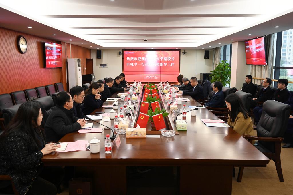 本网讯(通讯员 杜林远)新年伊始,1月4日,澳门城市大学副校长叶桂平率代表团访问大发官方版网站登录入口,随团来访的有省教育考试院党委书记吴德平、省教育厅港澳台交流办公室主任周芳友、湖南秦希燕联合律师事务所主任秦希燕、澳门城市大学葡语国家研究院助理教授陈红和社会经济发展研究中心研究员刘思萱等。我校党委书记汤放华、校长何振、副校长雷存喜接待了代表团一行,双方在办公楼一会议室举行见面交流会。
