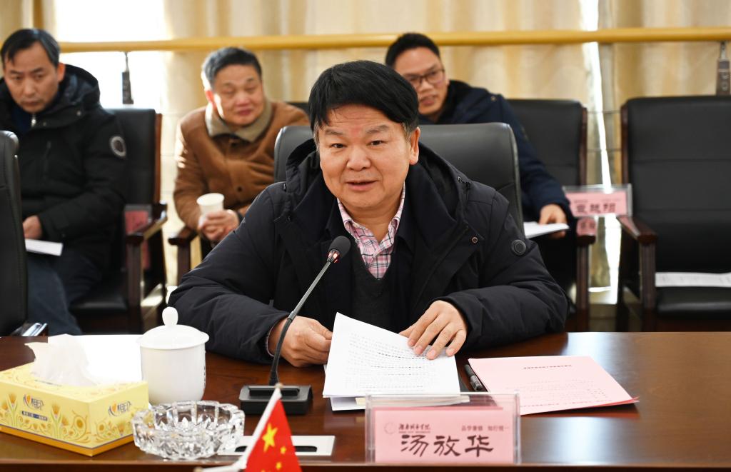 汤放华通报了过去一年学校改革发展整体情况,详细介绍了学校在科研与学科建设、教育教学、师资队伍建设、人才培养、精细化管理等方面取得的成绩。