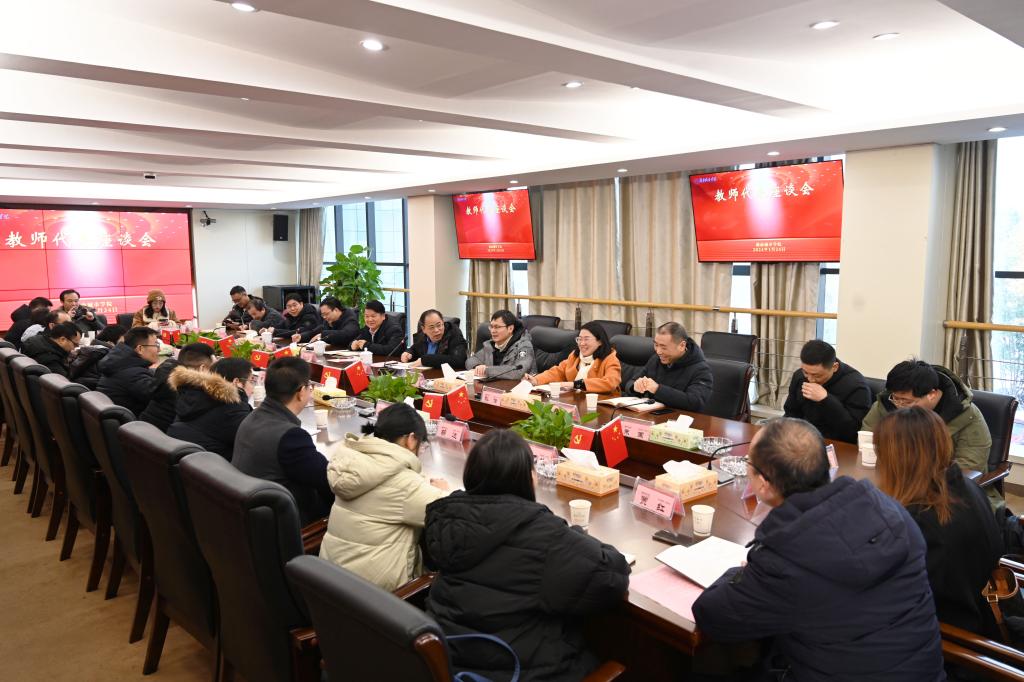 本网讯 为广泛听取教师对学校高质量发展的建议,激发教师干事创业的积极性、主动性,1月24日上午,学校在办公楼一会议室召开教师代表座谈会。校党委书记汤放华、校长何振、副校长袁志成出席,23名二级学院及机关处室教师代表参加会议。座谈会由袁志成主持。
