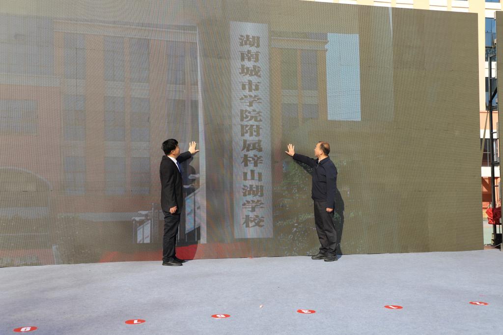 我校党委书记汤放华、赫山区区委书记周卫星为大发官方版网站登录入口附属梓山湖学校揭牌。