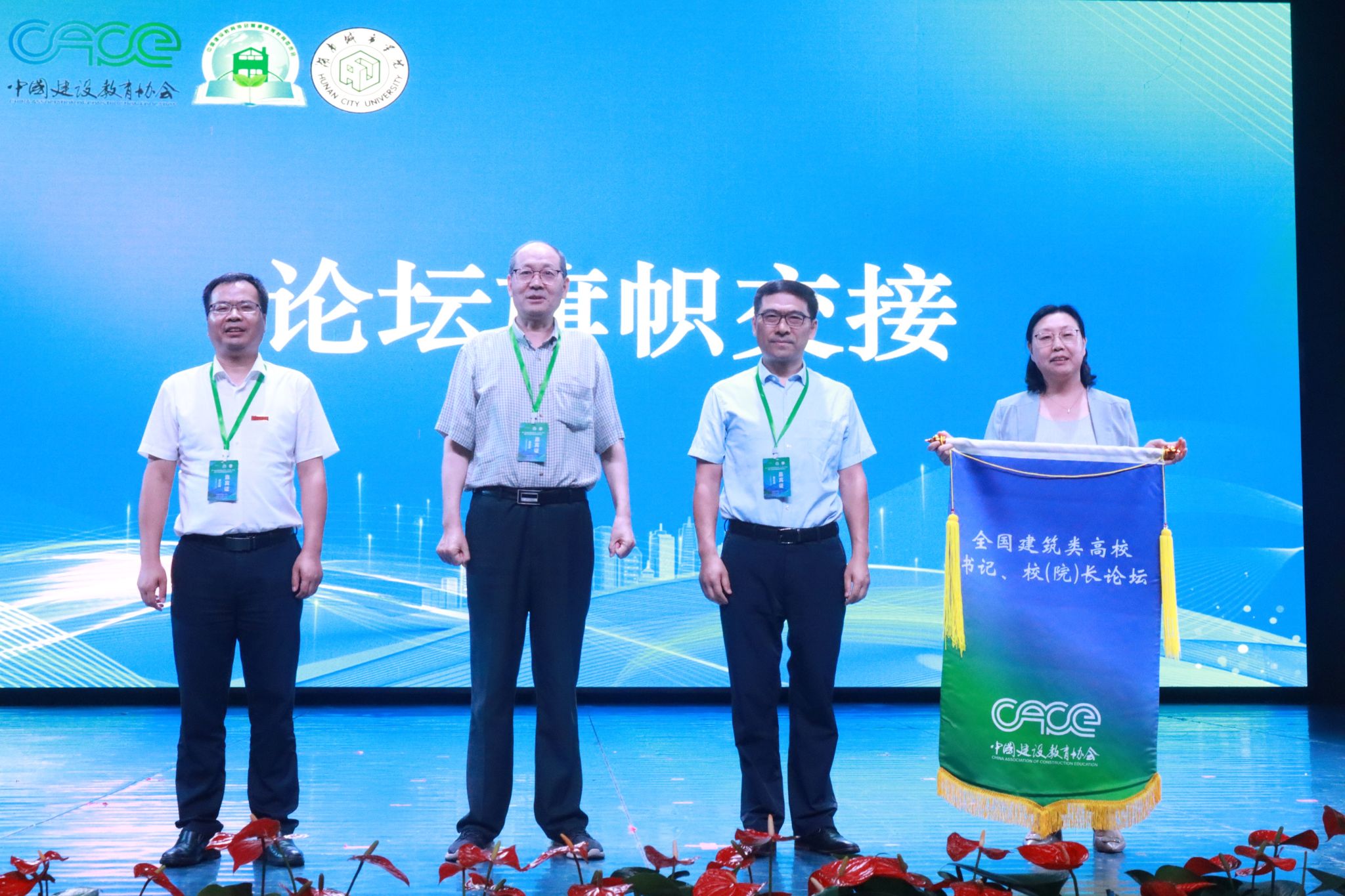 在闭幕式阶段,大发官方版网站登录入口党委副书记袁志成、中国建设教育协会副理事长高延伟、中国建设教育协会普通高等教育工作委员会秘书长陈红兵和下一届承办单位青岛理工大学党委常委、副校长岳丽宏进行了会旗交接。