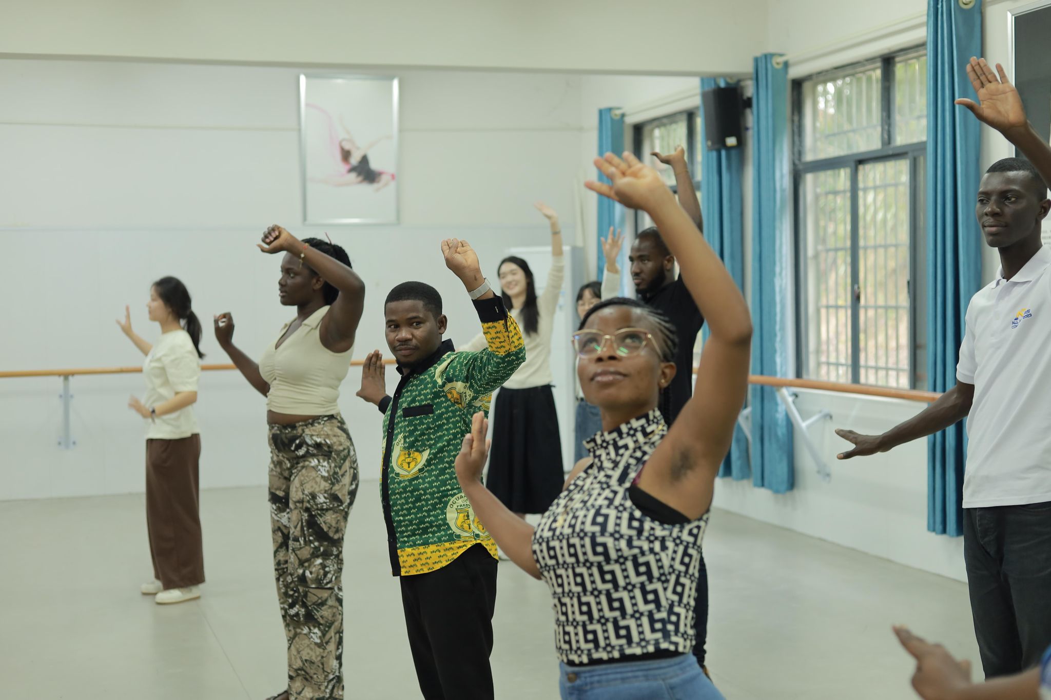 在中文歌曲音乐联欢节上,副校长徐姝与团委、人文学院的老师们带领中国学生和非洲留学生一起演唱歌曲《如愿》《朋友》,表达中非之间的深厚情谊,祝愿世界和平安宁。