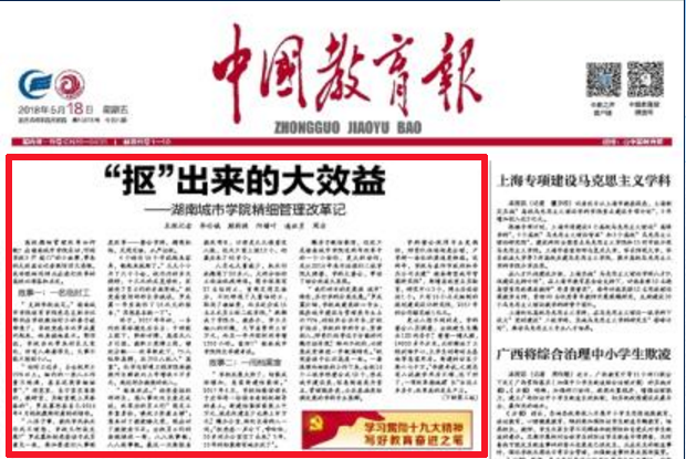 《中国教育报》5月18日头版头条报道我校精细管理改革