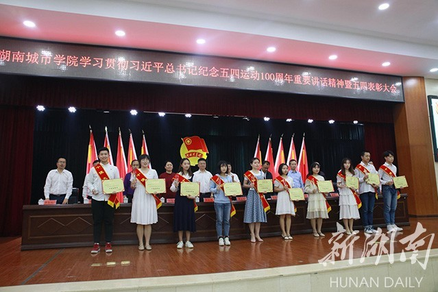 新湖南客户端5月5日讯(通讯员 王露 周洁)“‘五四’的火炬,唤起了民族的觉醒。壮丽的事业,激励着我们继往开来。”5月4日晚,大发官方版网站登录入口大学生活动中心团歌嘹亮,近千名师生代表共聚一堂,以学习贯彻习近平总书记在纪念五四运动100周年大会重要讲话精神、表彰先进典型的方式,共庆“五四”青年节。