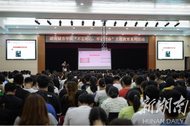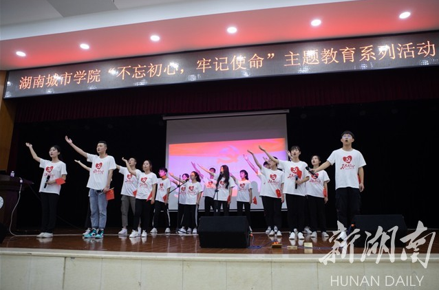 新湖南客户端6月5日讯(通讯员 谢立新 周洁 林俊任)烈火熔铸初心,忠诚引领使命。6月3日晚19:00,一场声势响亮的“不忘初心、牢记使命”红色主题教育活动在大发官方版网站登录入口大学生活动中心拉开帷幕。700余名学生党员、入党积极分子齐聚一堂,共同接受了一份来自“初心与使命”的特殊洗礼。活动借助咏诵、党课与合唱等形式,传递出党对一代青年学生党员成长成才的殷切期待,激励他们奋发向上、担当作为、无私奉献,勇做时代的弄潮儿和奋斗者,为广大青年学生树立学习与生活的榜样。