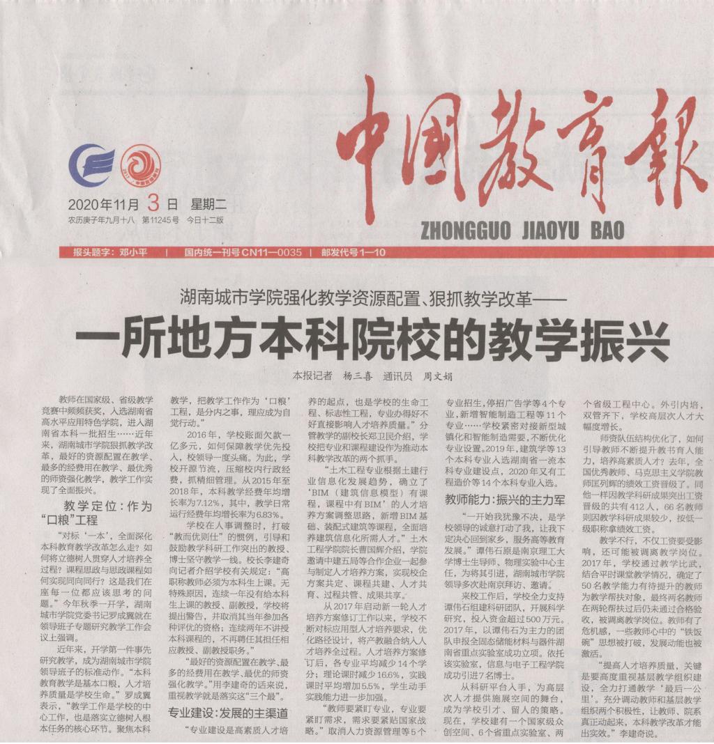 11月3日《中国教育报》03版报道我校教学改革。