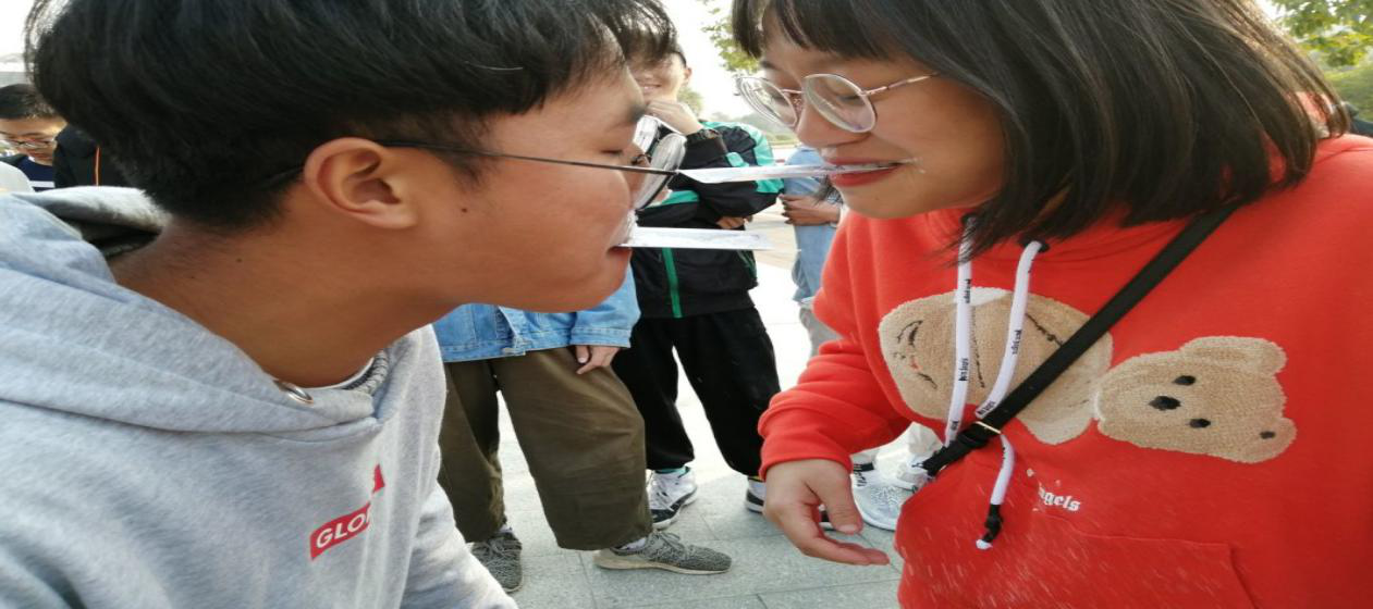 首先有名为大冒险的暖场游戏,每组派四人随机在气球中抽取纸条,根据纸条上的命令,做相应的指令。第一个游戏:爱的传递,参赛人员分成若干组依次排列,从头到尾进行面粉传递,只用口叼住纸牌传递面粉,不准动手去触碰,传完三次之后积攒面粉多的一队获胜。第二个游戏:人数抱对,参赛各组围成一圈边跑边跳,当听到指令时(如三个人,五个人就三个人抱一块,五个人抱一块)主持人一旦喊出人数,游戏中的人就要在最短的工夫内组成那个数的小团队并站起来,落单的人淘汰,重复几轮后留下的人多的组获胜。第三个游戏:动物连连蹲,各队抽出三名队员,自己选择一个动物称号,开始后由主持人背对参赛队员随机喊某种动物“某某蹲、某某蹲、某某蹲完某某蹲”蹲错的被罚下场,计时三分钟,最后哪队剩人最多为获胜。