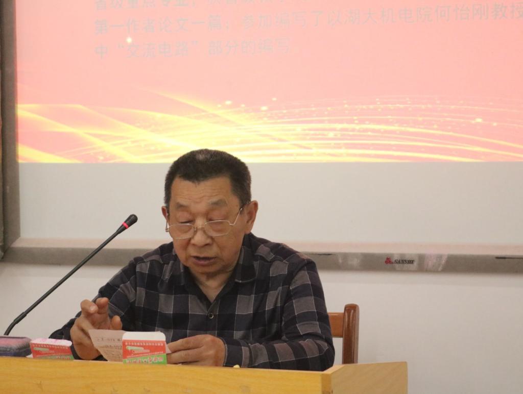 肖玉衡,物理副教授,曾任大发官方版网站登录入口物电系系主任、系党支部书记等职务,现任大发官方版网站登录入口关工委副主任。肖主任以“我以忠心当教师”为题分享了自己从教四十多年的经历,他一直以“忠于党的教育事业”为座右铭,听党话,跟党走,忠心待学生,潜心功教学,勇于担当,坚持为党育人、为国育才。