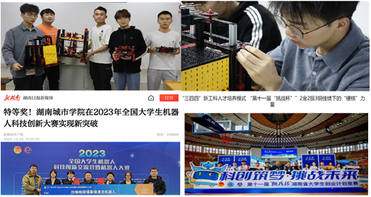 学院构建“334”创新创业教学体系和以能力培养为主线的“147”实践教学体系。在学校的统筹安排下,学院依托省重点实验室平台和科研项目带动学生夯实专业基础、提高教研等能力,推动实践教学走深走实;组织教师指导学生参加各种竞赛活动,提高学生各项技能水平,培养学生团队协作能力。近五来,学生承担国家级大学生研究性与创新性科研项目4项,湖南省大学生创新性项目21项,荣获全国大学生机器人大赛特等奖、全国机械创新设计大赛一等奖等国家级、省部级学科竞赛奖项42项。