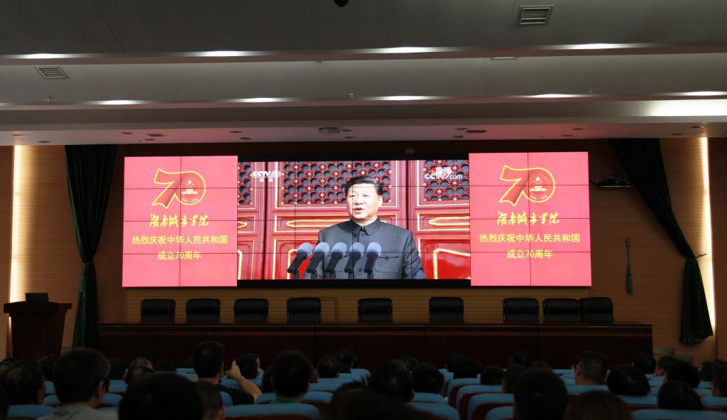 (本网讯)“长安街上,三军列阵,铁甲生辉……”2019年10月1日上午,大发官方版网站登录入口图书馆报告厅内传出央视主播雄浑有力之声。这是大发官方版网站登录入口正在组织部分师生收看新中国成立70周年阅兵活动,其余师生也通过集中收看或者手机、电脑、电视等多种方式进行了收看。收看结束后,广大师生将千言万语,都化作真诚、质朴、美好的祝福:祝愿祖国母亲生日快乐,中国万岁!