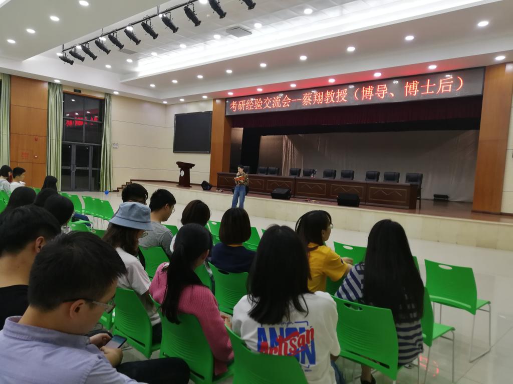 蔡翔教授给在场的管理学院学生介绍了自己的求学历程,也谈了自己作为博士生导师和硕士生导师,在选择研究生时的侧重点,并对大家的考研给出了若干意见。并就在场学生的各类问题进行交流答疑。