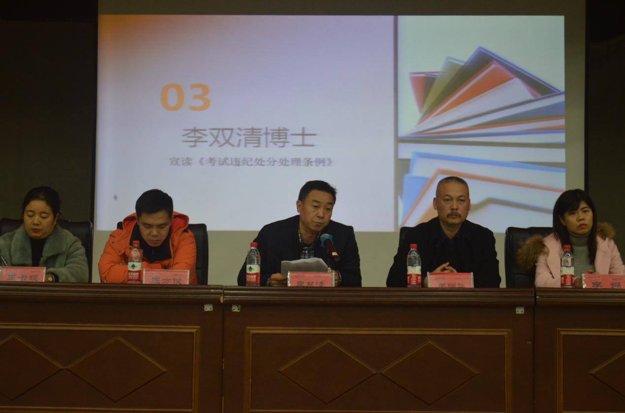 会议由学工办负责学风建设工作的张力老师主持。副院长李双清老师宣读了《大发官方版网站登录入口考试违纪处分处理条例》,解读了考试作弊行为的认定和处理办法。党委副书记王润华老师解读了国家考试入刑处理条例,对公平诚信考试提出了要求;同时,对2019届学生寒假社会实践安排、社会实践报告做了部署;强调了学生寝室用电安全、寒假放假出行交通安全、学生自身财产安全的安全注意事项。