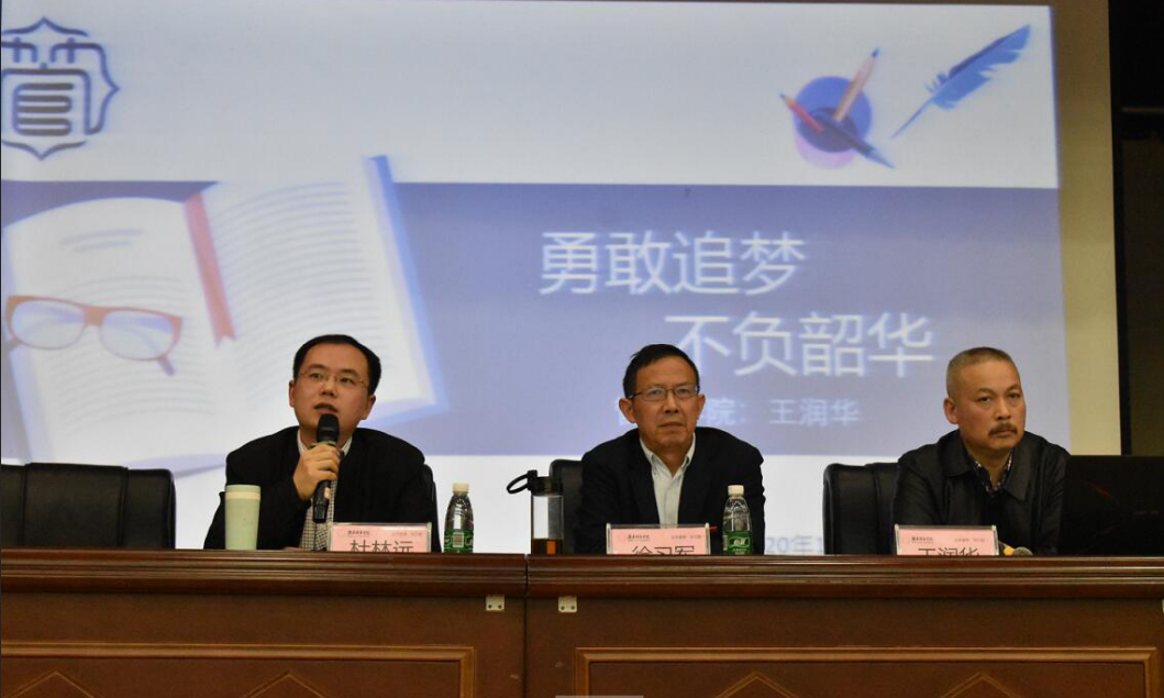 会议第一项王润华教授分别讲述了学生为什么要考研、考研之路的常见问题等。他强调考研是大学生意志力的综合体现,考研过程充分反映了大学生的自我学习能力,鼓励在座的各位要有毅力、有恒心,做有理想敢拼搏的当代大学生。会议第二项杜林远博士谈到如何选择学校专业,提醒学生谨慎选择院校专业,不可好高骛远,更要协调处理好所学课程与考研的两件事。他还建议考研学习要保持良好的心态,注重效率。会议第三项考研班主任代表黄彪老师谈到了自己所在研究生母校多数人都是从普通本科,一步一步通过自己努力考上研究生,告诫大家不要对自己失去信心,别人能行,自己肯定也没问题。会议第四项学生代表罗荣威从考研决心和考研目标进行展开,表示考研是一场马拉松,没有坚定的决心和明确的目标很难到达终点,我们大学生要树立正确的考研目标,勇往直前。最后徐习军教授总结发言,他表示考研重过程,走向考场就是胜利,考研是形势所需也是提升个人能力的选择,鼓励大家报考。他引用习近平总书记在北京大学师生座谈会上的一段话来寄语学生。“广大青年既是追梦者,也是圆梦人。追梦需要激情和理想,圆梦需要奋斗和奉献。广大青年应该在奋斗中释放青春激情、追逐青春理想,以青春之我、奋斗之我,为民族复兴铺路架桥,为祖国建设添砖加瓦。”