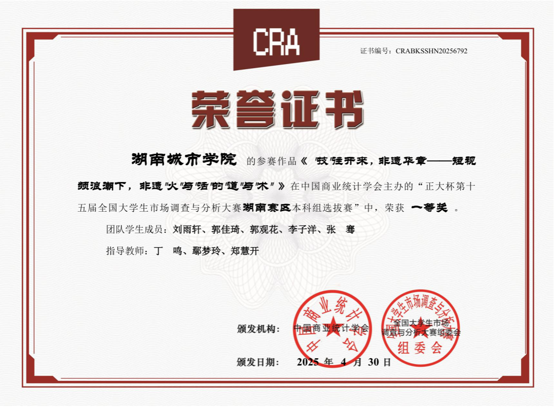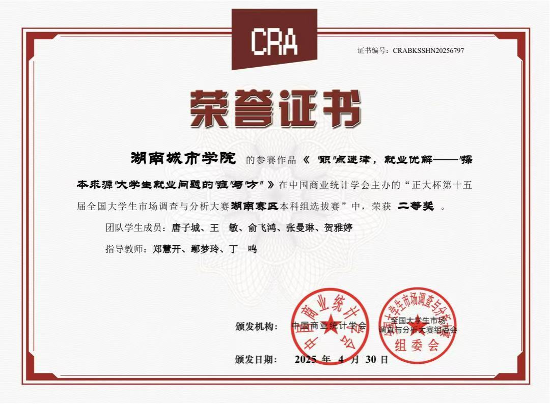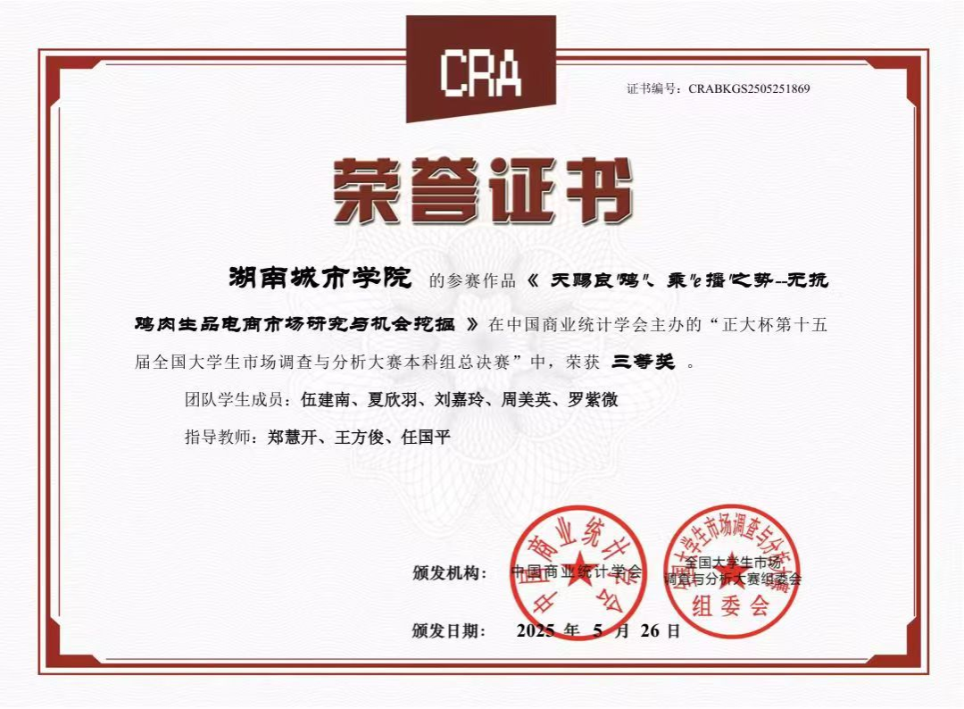 大发官方版网站登录入口对本次赛事给予高度关注,在教务处的全力支持下,管理学院郑慧开等9位老师组成专业指导团队,精心筹备赛事组织与备赛指导工作,凭借科学规划与积极动员,吸引众多学子踊跃报名参与比赛。经过校内选拔赛,共有7支团队脱颖而出晋级省赛。最后经过省赛队伍激烈的角逐与层层选拔后,我校伍建南、夏欣羽、刘嘉玲、周美英、罗紫微同学在本次大赛全国总决赛中获得国家级三等奖1项。此外,在湖南赛区选拔赛中,我校学子还获得省级一等奖3项、省级二等奖3项、省级三等奖1项。