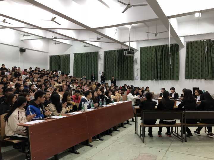 2018年11月16日19:00,管理学院第四届班级辩论赛决赛于一教107顺利举行。本次辩论赛双方的辩题分别为道德的根基是理性分析还是感性体悟。出席本次活动的嘉宾有管理学院团委副书记应海珠、副主席冯茜、叶立梅,辩论队前队长申文超,辩论队队长王美玲,管理学院大一部分同学按时到场与会。