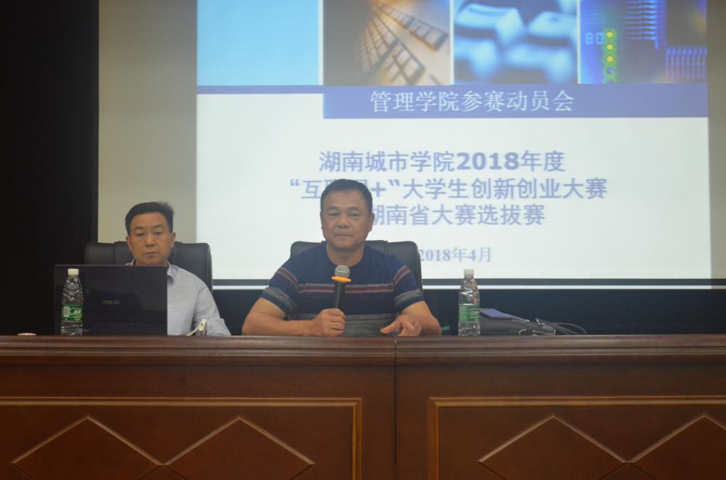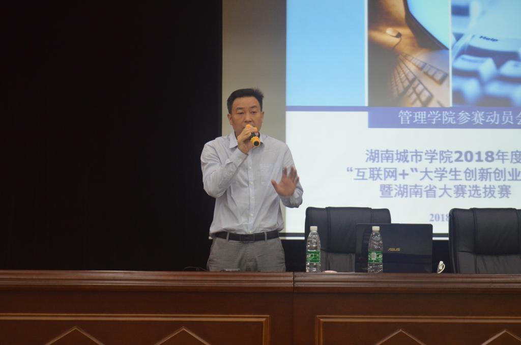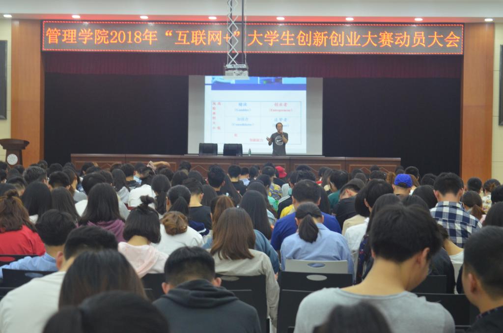 2018年4月1日、4月3日晚七点,管理学院针对全体在校学生召开了连续两场“互联网+”大学生创新创业大赛动员大会,地点在学生活动中心。主讲人是管理学院副院长汤勇及管理学院公共管理系主任李双清,出席本次动员大会的嘉宾有管理学院党委副书记贺望林、分团委书记李姗、辅导员黄慧雅。