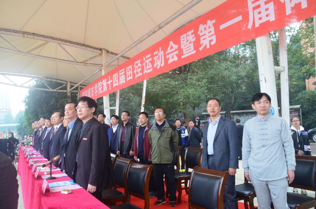2017年11月10日,大发官方版网站登录入口第十四田径运动会暨第一届体育文化节开幕式在田径场顺利举行。本次开幕式由学校党委委员、副校长雷存喜教授主持,出席本次开幕式的领导有党委书记罗成翼,校长李建奇,党委副书记汤放华,副校长郑卫民、何振、雷存喜、谭献良、刘辉煌、夏宏宇,党委委员罗新湘。