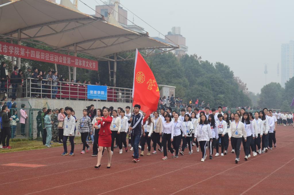 上午八点,伴随着《运动员进行曲》的音乐声,国旗方阵和各学院代表队入场。紧接着,学校各二级学院方阵依次入场。同学们个个身姿挺拔、精神抖擞。之后,全体起立,唱国歌、校歌,升国旗、校旗。升旗仪式结束后,校长李建奇教授致开幕词,他简单介绍了本次运动会的流程及规则,表达了对全民健身的美好期盼。接着,运动员文苏英宣誓:坚持秉承友谊第一、比赛第二的原则参赛。之后,裁判员谭文兵宣誓:保证以公平、公正、公开的原则参与本次运动会。然后,党委书记罗成翼教授宣布开幕令。最后,本校学生和老师带来了精彩的节目,深化了全民健身的主题。