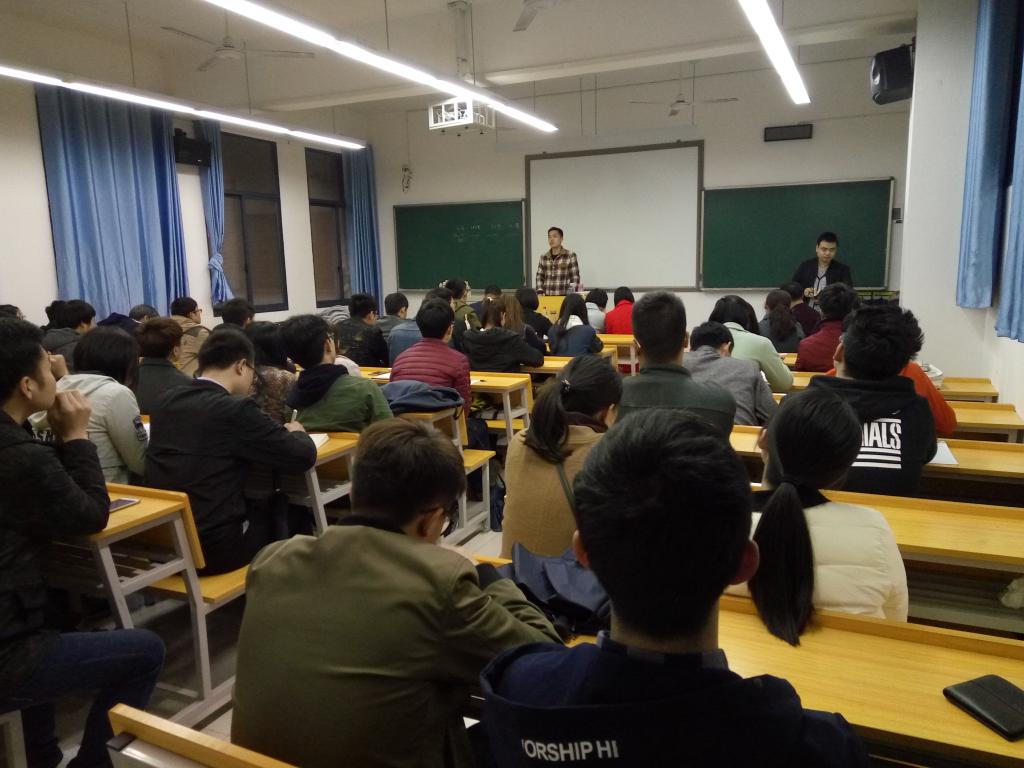 最后,贺书记进行讲话,他提出近期学院要狠抓学风,严查上课违纪,特别是上课玩手机与代课。尤其针对代课现象,贺书记提出要求每位同学交一张全身近照,并且会不定期抽查学生证、身份证和校园卡;若查到有代课现象将会严肃处理代课双方。最后,贺书记指出学院将加强班团干部培养及考核。