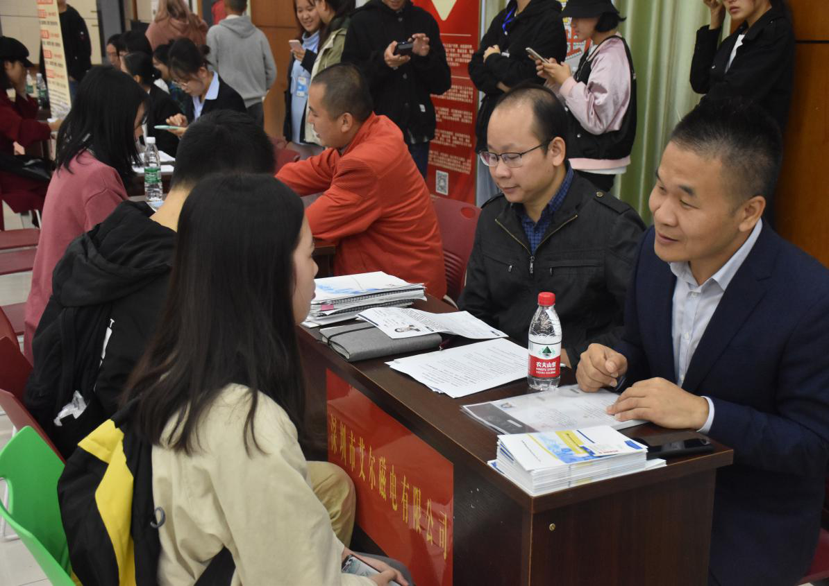 接着,到场同学与招聘单位进行沟通面试。招聘会现场气氛热烈,每一位面试的同学从容自信,侃侃而谈,展现了大发官方版网站登录入口学子的良好修养。会中参会单位普遍认为我校人才培养质量较高,学生踏实肯干,适应能力强。招聘会期间,管理学院党委副书记王润华亲自与用人单位沟通交流,了解近期招聘要求及人才需求。并鼓励毕业生树立正确的就业观,做好长远职业规划,理性看待就业形势。据了解,广东省湖南益阳商会企业原计划招聘学生142人,广东省金康投资有限公司追加计划20人。