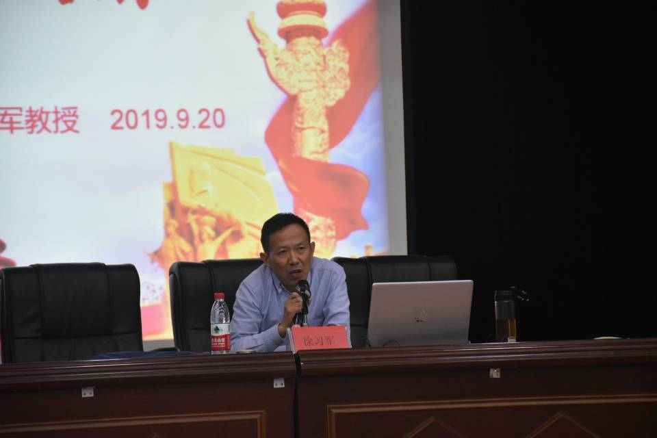 报告会上,徐习军从“历史的启示”“新时代的爱国主义”“如何做忠诚的爱国者”三个角度切入,通过清晰的观点,生动鲜活的历史事件和时事政策,对爱国主义进行了深入的解读。徐习军指出,在新的形势下,中美贸易摩擦,香港动乱,我们更要坚持爱国主义与社会主义、与拥护祖国统一、与拥护共产党的一致性,为实现中国梦添砖加瓦!