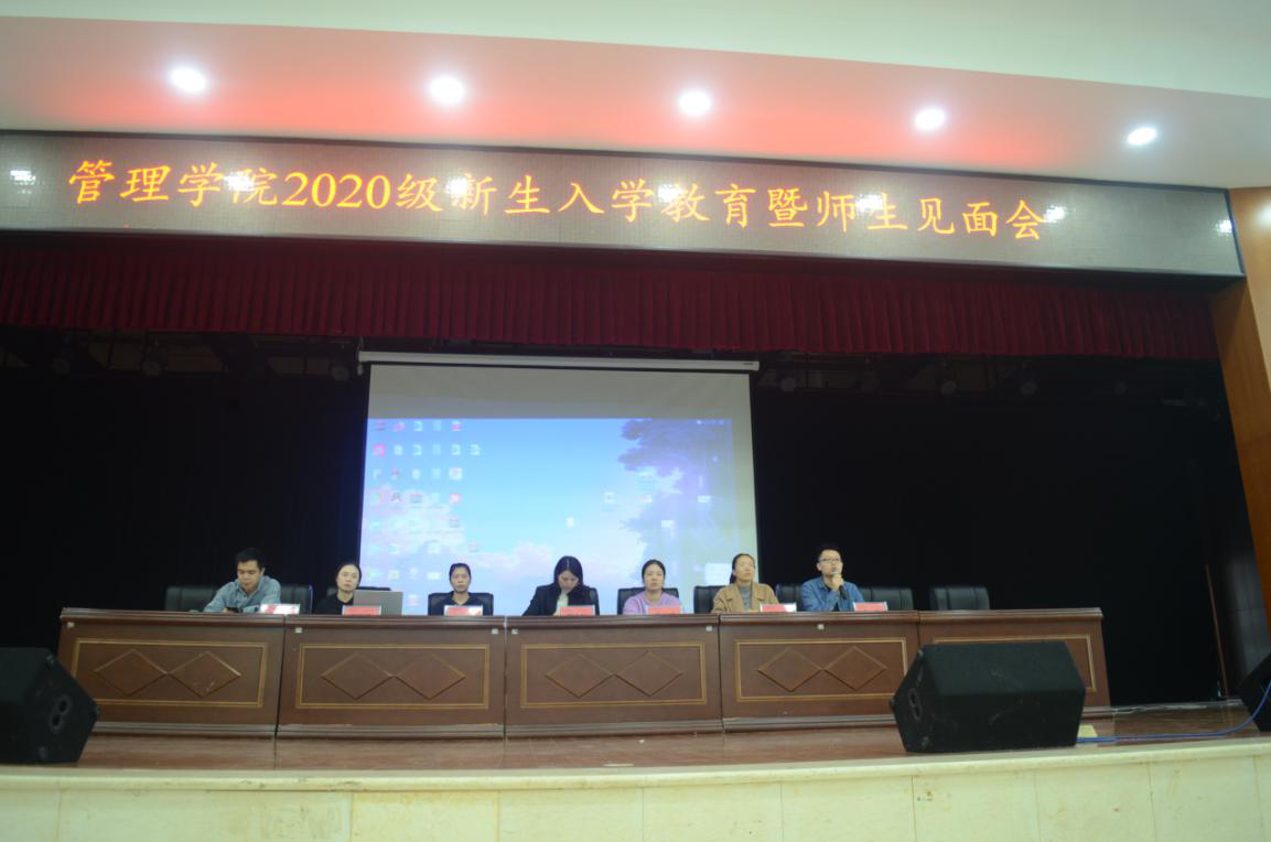 9月28日上午8点,管理学院在新食堂三楼活动中心举行2020级新生入学教育暨师生见面会,与会人员有管理学院党委书记徐习军、党委副书记王润华、副院长赵旭、分管教学工作的杜林远博士、各教研室主任、没课的任课老师、全体辅导员以及2020级全体学生。本次会议由徐习军书记主持。