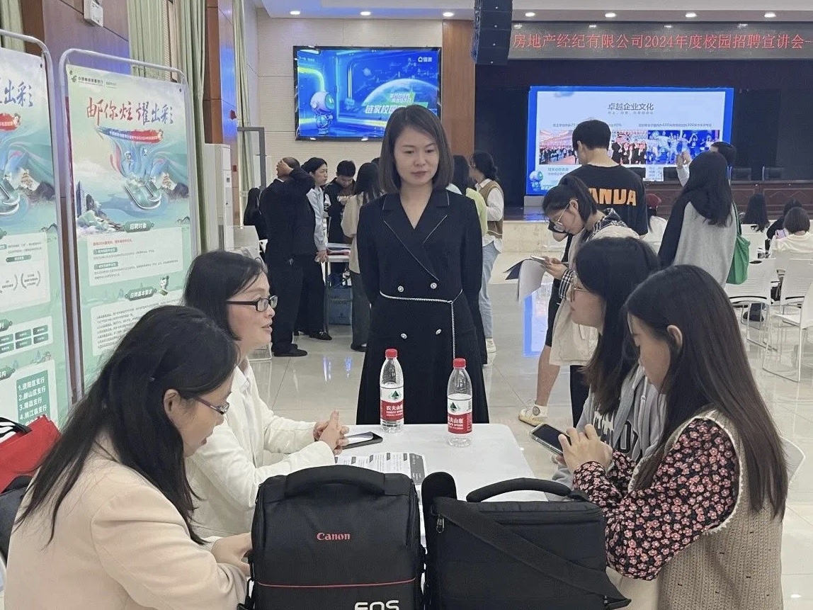 链家(德佑房地产经纪有限公司)是一家集房产交易服务、资产管理服务为一体以数据驱动的价值链房产服务平台,业务覆盖二手房交易、新房交易、租赁、装修服务等。目前线上已覆盖PC端、链家APP、链家网手机版等终端,是具备集房源信息搜索、产品研发、大数据处理、服务标准建立为一体的综合型房产服务平台。负责人详细介绍了薪资福利、发展空间、工作环境等。同时在现场进行了有趣的互动环节,同学们都积极参与,希望获得公司赠送的小礼品,现场气氛活跃,同学们热情高涨。