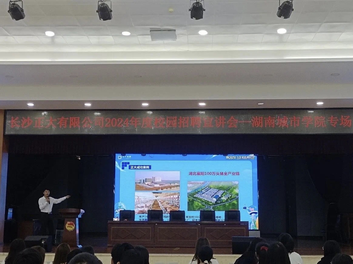 正大集团是湖南省第一家农业外资企业,现已在湖南投资规划了多个战略项目,以全产业链的模式布局湖南市场,投资领域涵盖饲料、农牧养殖、食品、零售等版块,而长沙正大有限公司是泰国正大集团与长沙县人民政府签约的投资项目,公司属泰国独资的大型饲料综合生产企业。长沙正大有限公司是目前中国最先进的饲料工厂之一。在招聘宣讲会上,负责人以幽默诙谐的风格介绍了长沙正大公司的主营事业、公司简介、岗位需求等,现场气氛活跃,大家积极交流、广泛提问。
