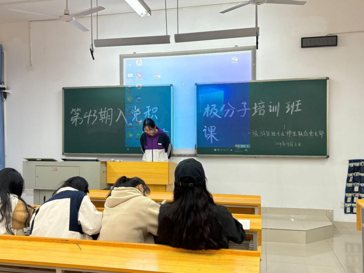 (通讯员:王卡妮、李亚群、杨震亮、王诗婷)2024年11月6日,管理学院旅游管理专业师生联合支部举行了入党积极分子研讨课。