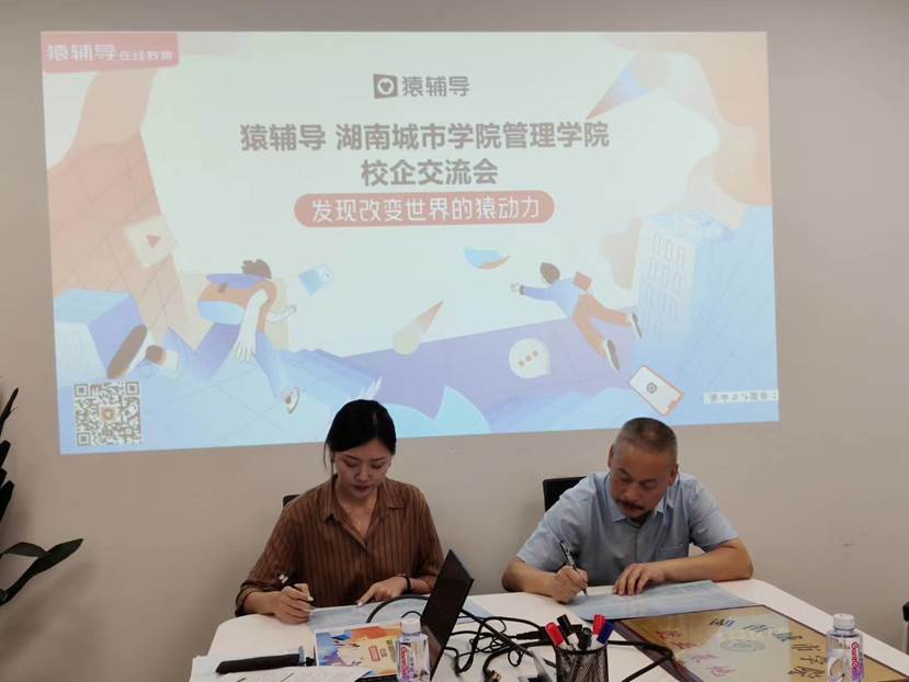 8月18日下午,大发官方版网站登录入口管理学院王润华书记、王方俊主任及学生代表来猿辅导长沙分公司进行公司走访交流,积极开拓就业市场。本次就业交流达成了校企就业实习基地的协议,猿辅导期待校企之间可以进一步深入交流与长期合作。本次交流主要由王书记、王主任与猿辅导长沙地区招聘负责人周柯利女士和HR老师们,围绕学校的就业动态、公司发展概况、城市学院管理学院校友目前在公司工作情况、春招提供岗位及薪资福利、春季招聘数据及校企就业合作的规划等内容展开。