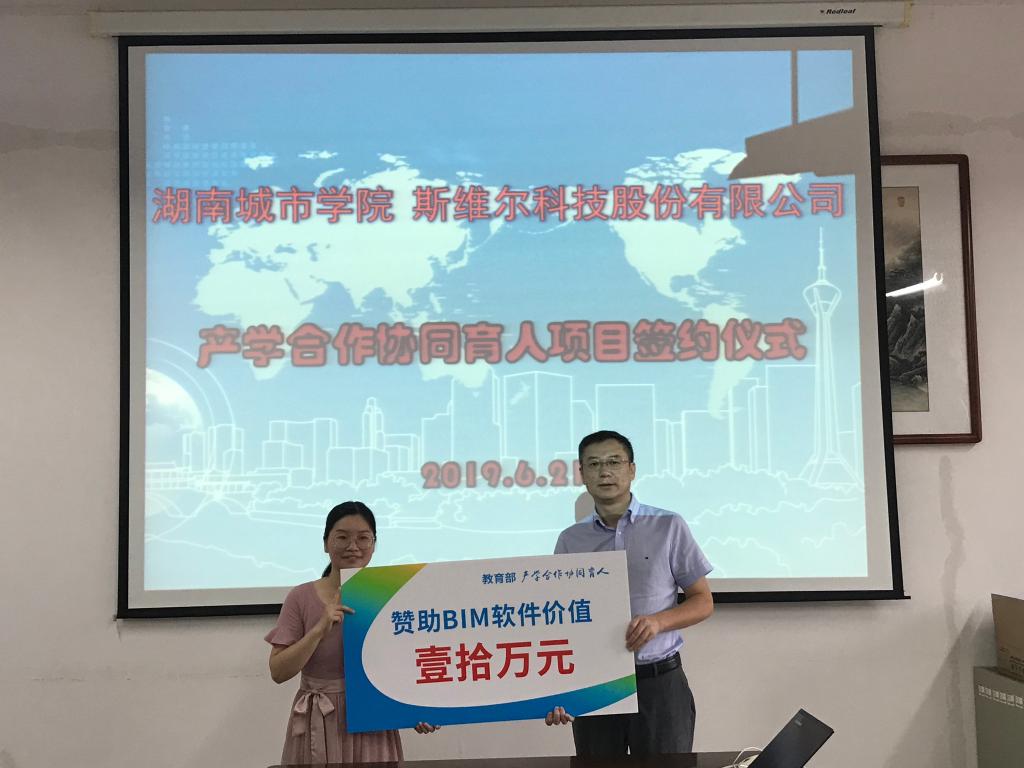 6月21日上午,大发官方版网站登录入口与深圳斯维尔科技股份有限公司联合申报的教育部产学合作协同育人项目《以BIM技术为牵引打造工程管理专业信息化、项目化核心课程体系》签约及授牌仪式在管理楼622会议室举行。斯维尔科技股份有限公司高级副总裁樊红缨、湖南分公司总经理庄大庆、中南地区高校经理杨振及湖南分公司高校经理祝鸿宇、大发官方版网站登录入口副校长谭献良教授、学科建设与发展规划处副处长汤勇教授、管理学院徐习军书记、孙倩院长、赵旭副院长等参加了签约仪式,仪式由管理学院院长孙倩教授主持。