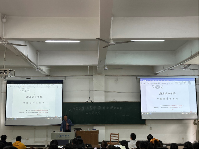 为了有效推进管理学院2024届工程管理专业大四学生的毕业设计工作,充分让同学们了解毕业设计的重要性、内容和注意事项,确保毕业设计选题等相关事宜按时实施。2024年3月14日14:00,在一教101教室,工程管理教研室组织举办了毕业设计动员大会。管理学院王正安书记、工程管理教研室主任陈艳、全体指导老师以及20级工程管理专业学生参加了此次会议,大会由陈主任主持。
