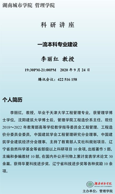 【学术讲座】13李丽红 教授:一流本科专业建设