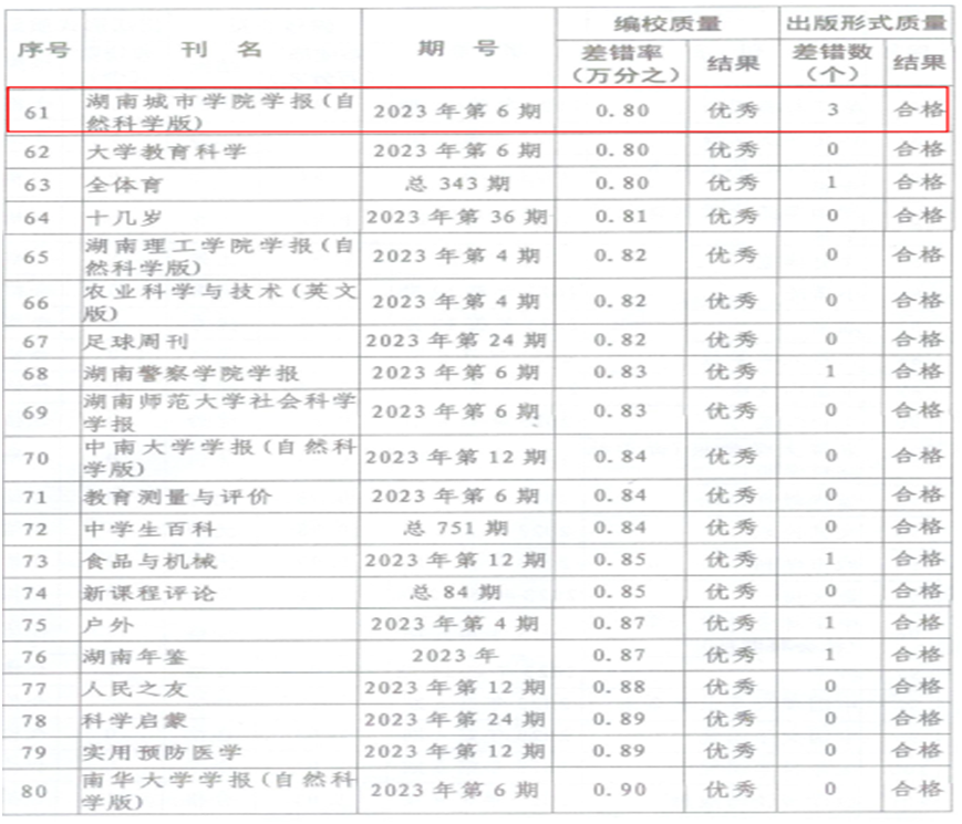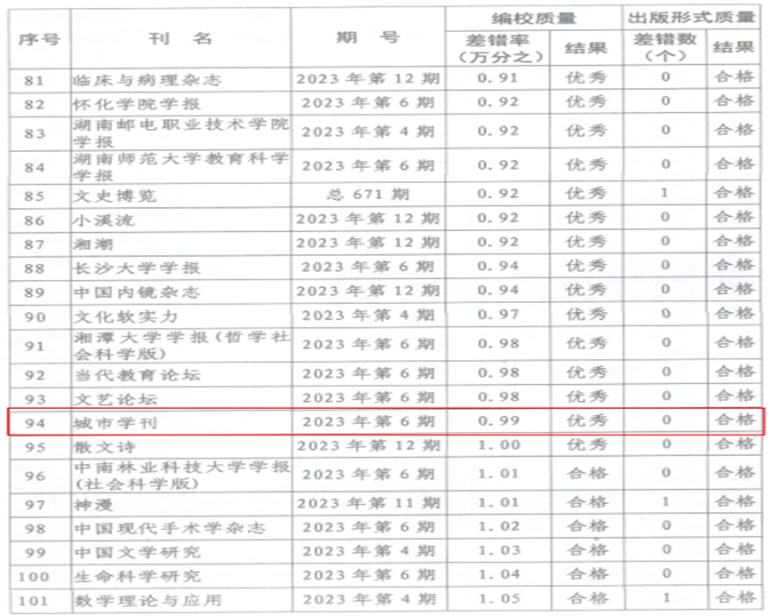 近日,湖南省新闻出版局下发《关于2023年度全省期刊质量检查情况的通报》,《大发官方版网站登录入口学报(自然科学版)》和《城市学刊》获评“优秀”等级。
